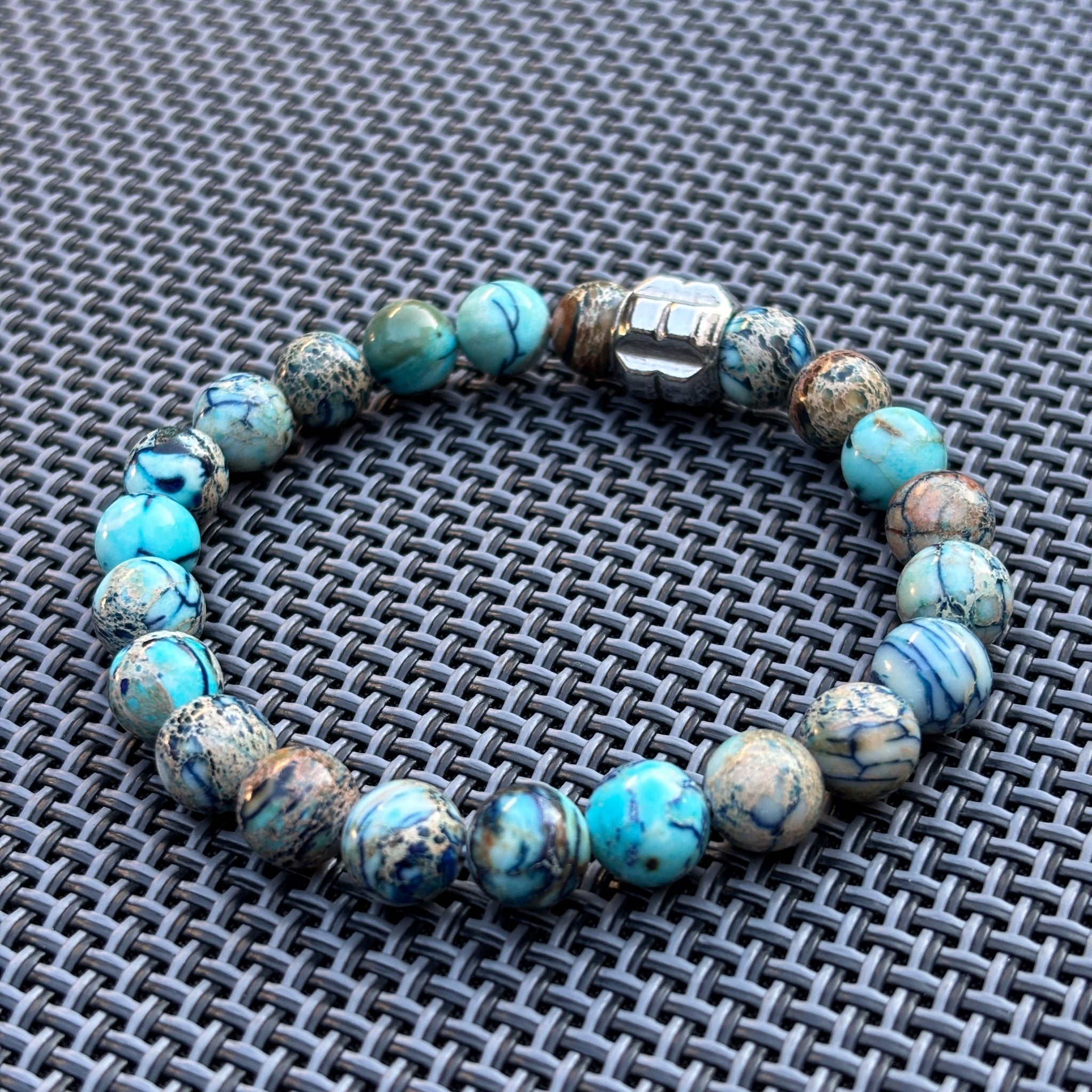 De armband bestaat uit 8 mm kralen van natuursteen met een stainless steel (RVS) sluitkraal. Stainless steel verkleurt niet en gaat lang mee. Zou je de armband in een andere kleurencombinatie willen of wil je een gepersonaliseerde armband naar jouw wensen? Neem dan contact met ons op.