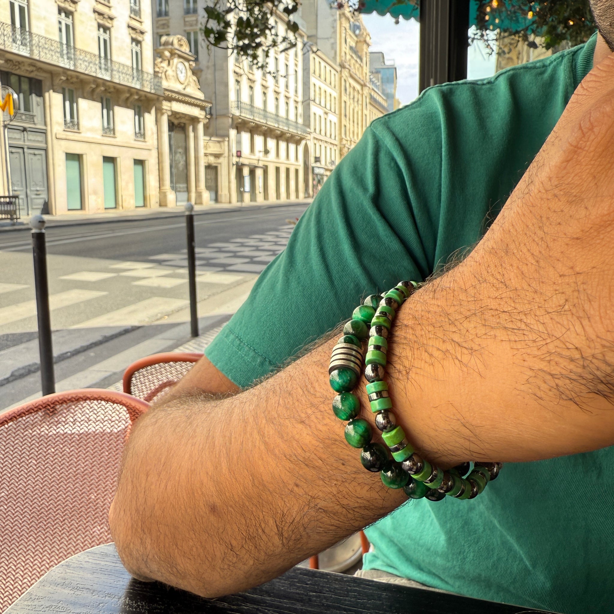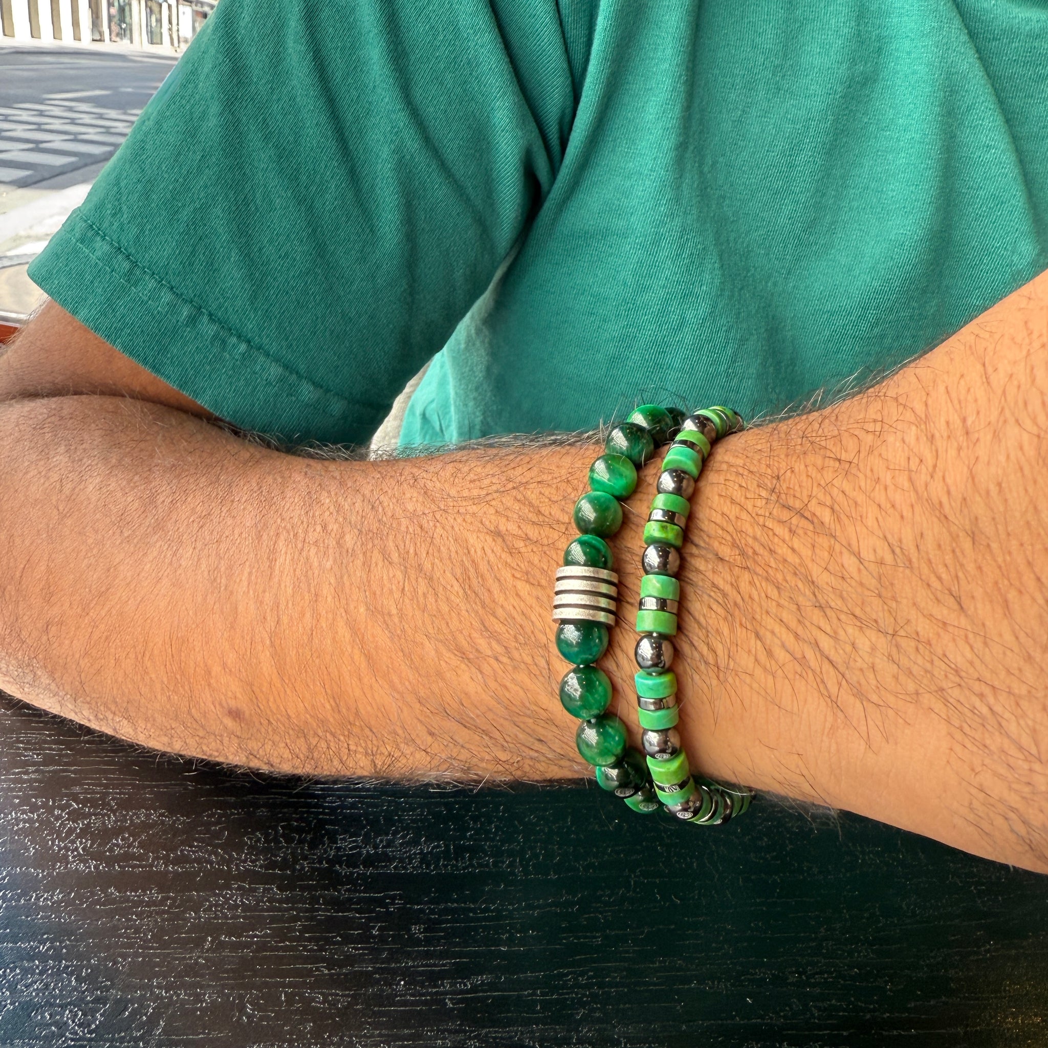 Dit is een set van twee armbanden. De armbanden zijn gemaakt van 8mm kralen van natuursteen met een stainless steel (RVS) sluiting. Stainless steel verkleurt niet en gaat lang mee. Zou je de armbandenset in een andere kleurencombinatie willen of wil je een gepersonaliseerde set naar jouw wensen? Neem dan contact met ons op.