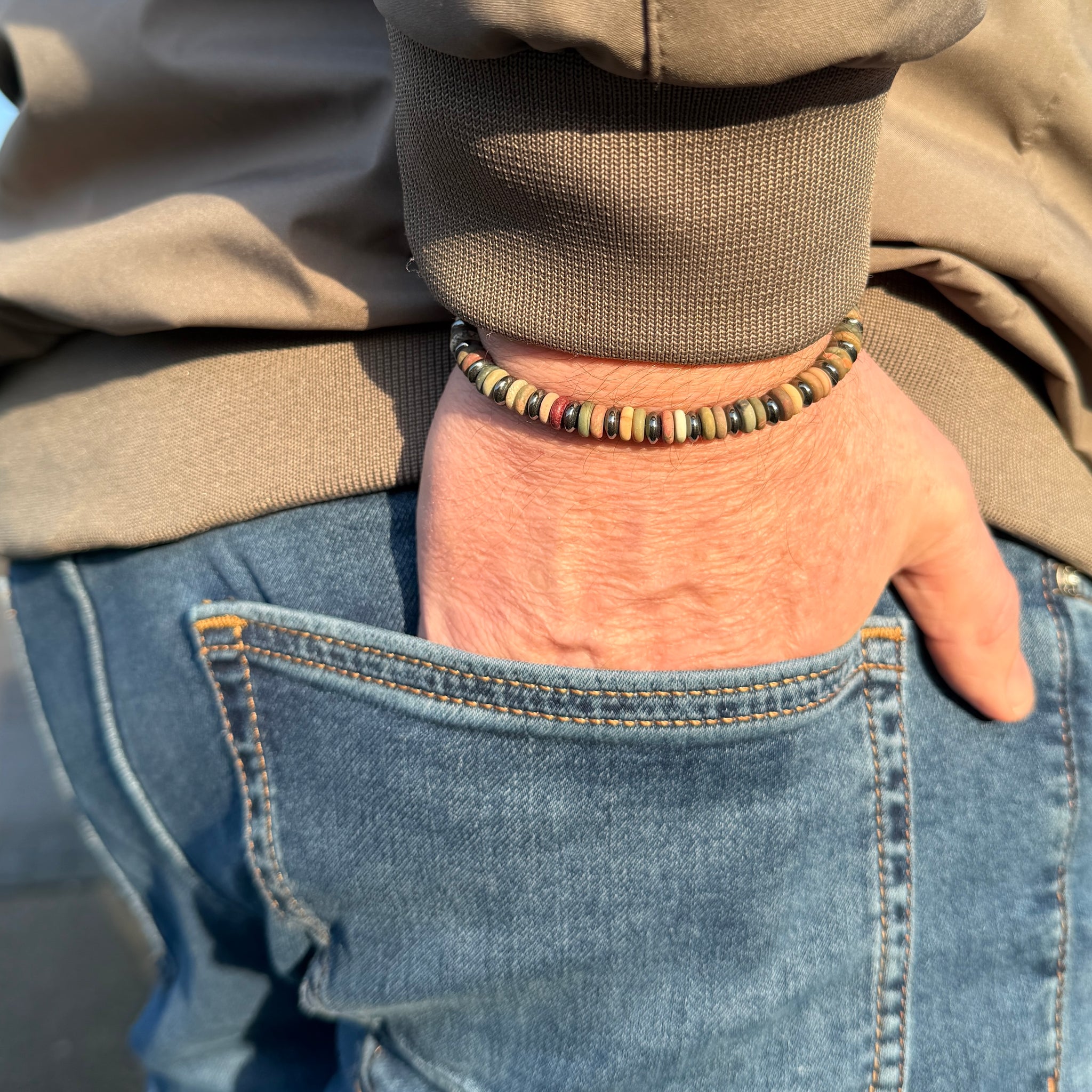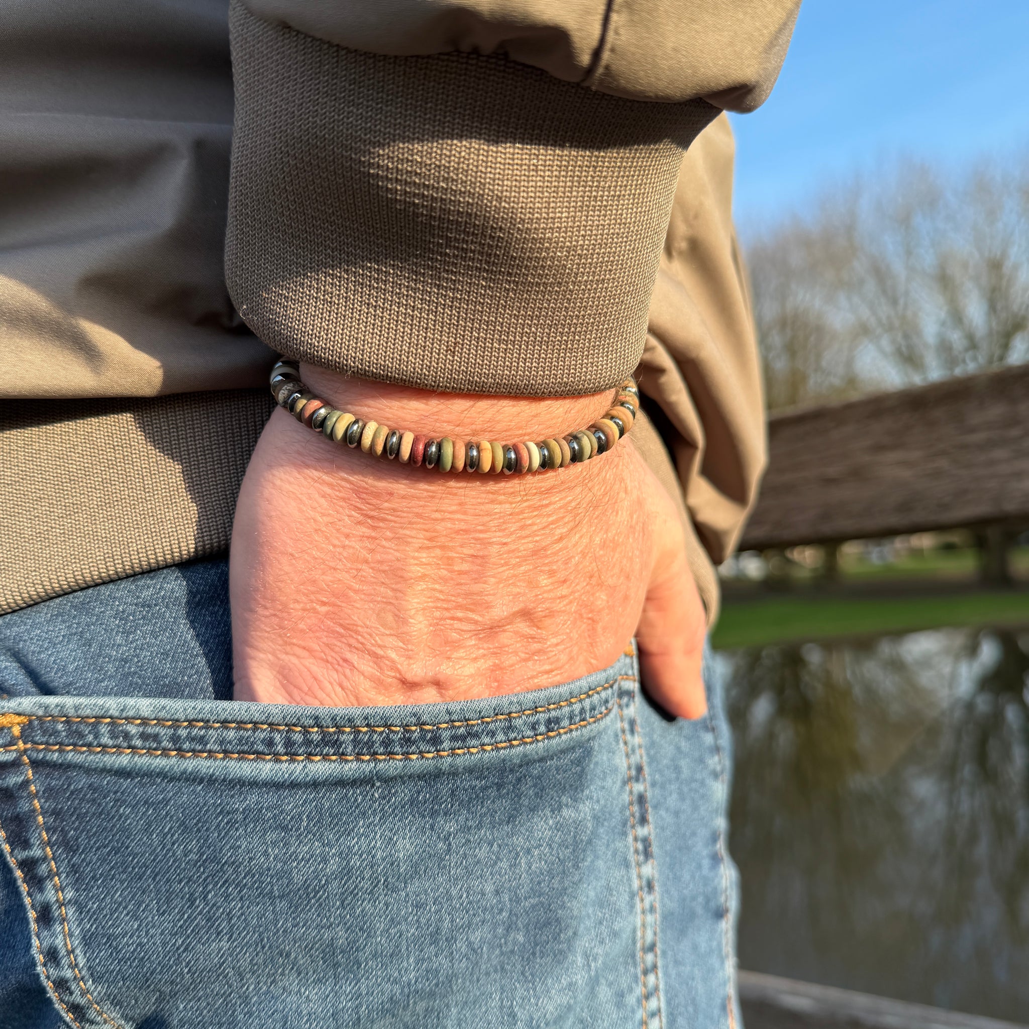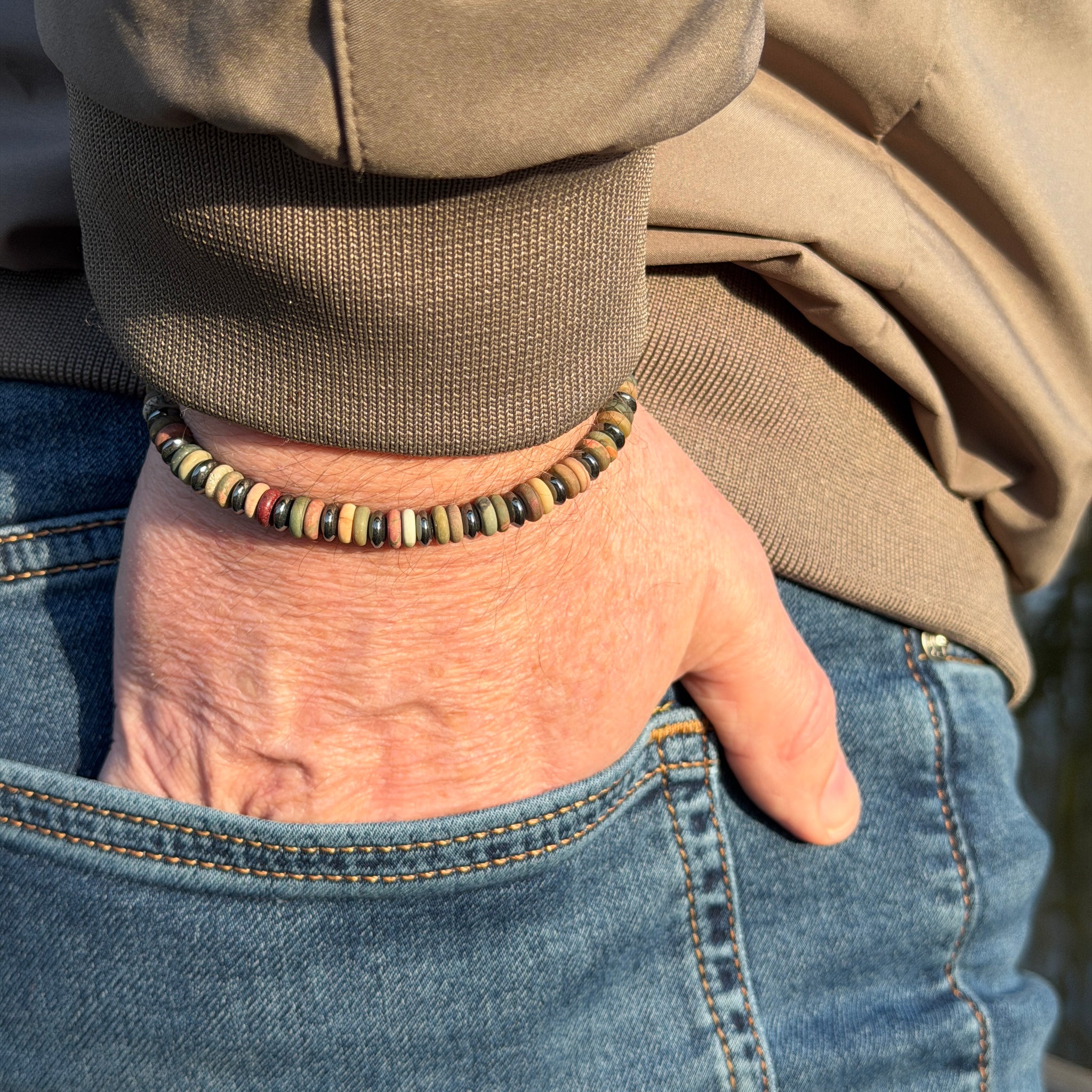 De armband bestaat uit 6 mm kralen van natuursteen met een stainless steel (RVS) sluitkraal. Stainless steel verkleurt niet en gaat lang mee. Zou je de armband in een andere kleurencombinatie willen of wil je een gepersonaliseerde armband naar jouw wensen? Neem dan contact met ons op.