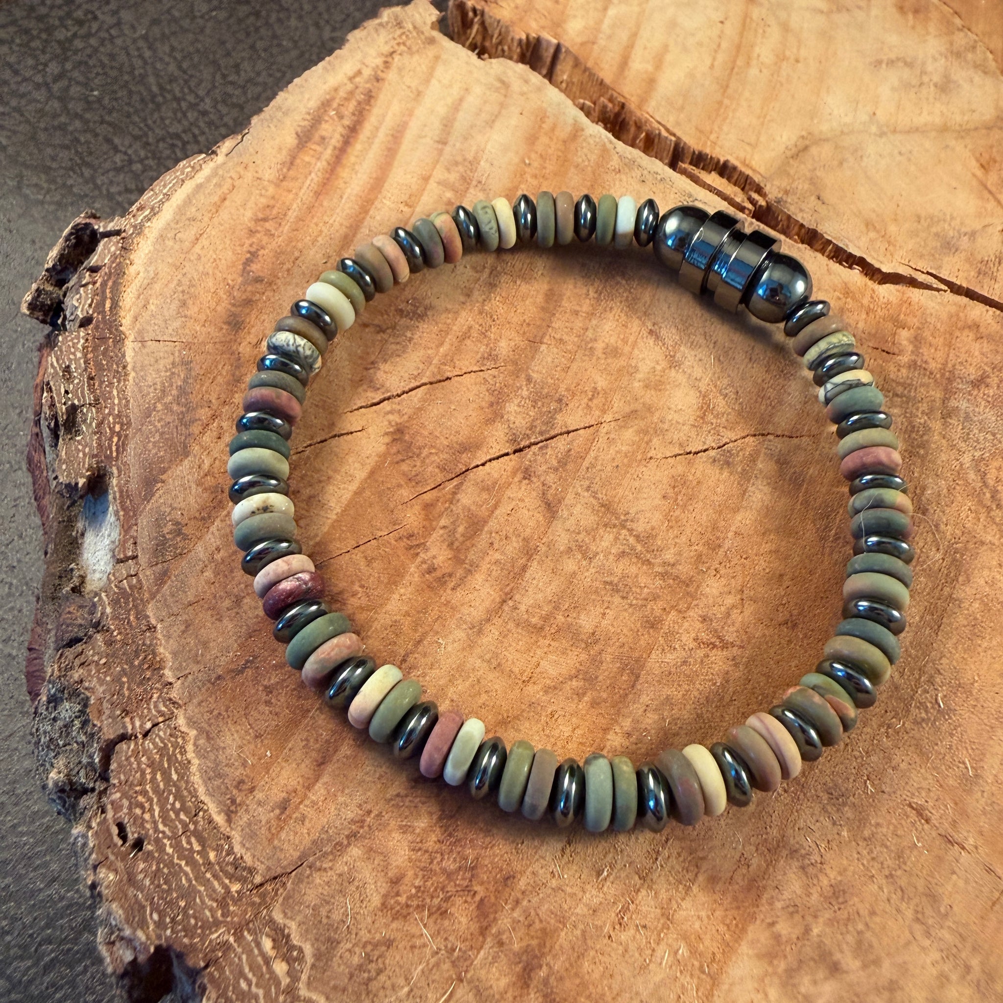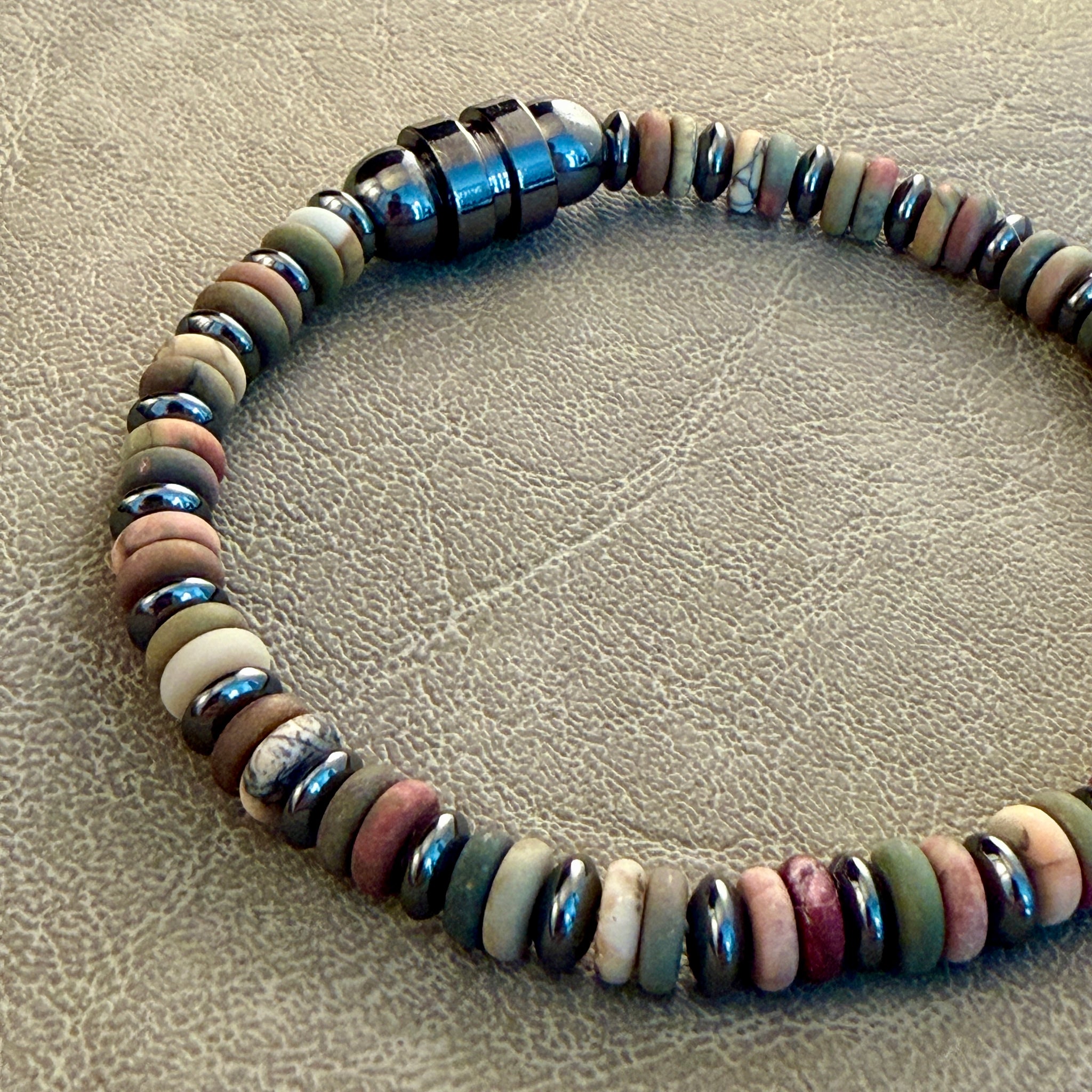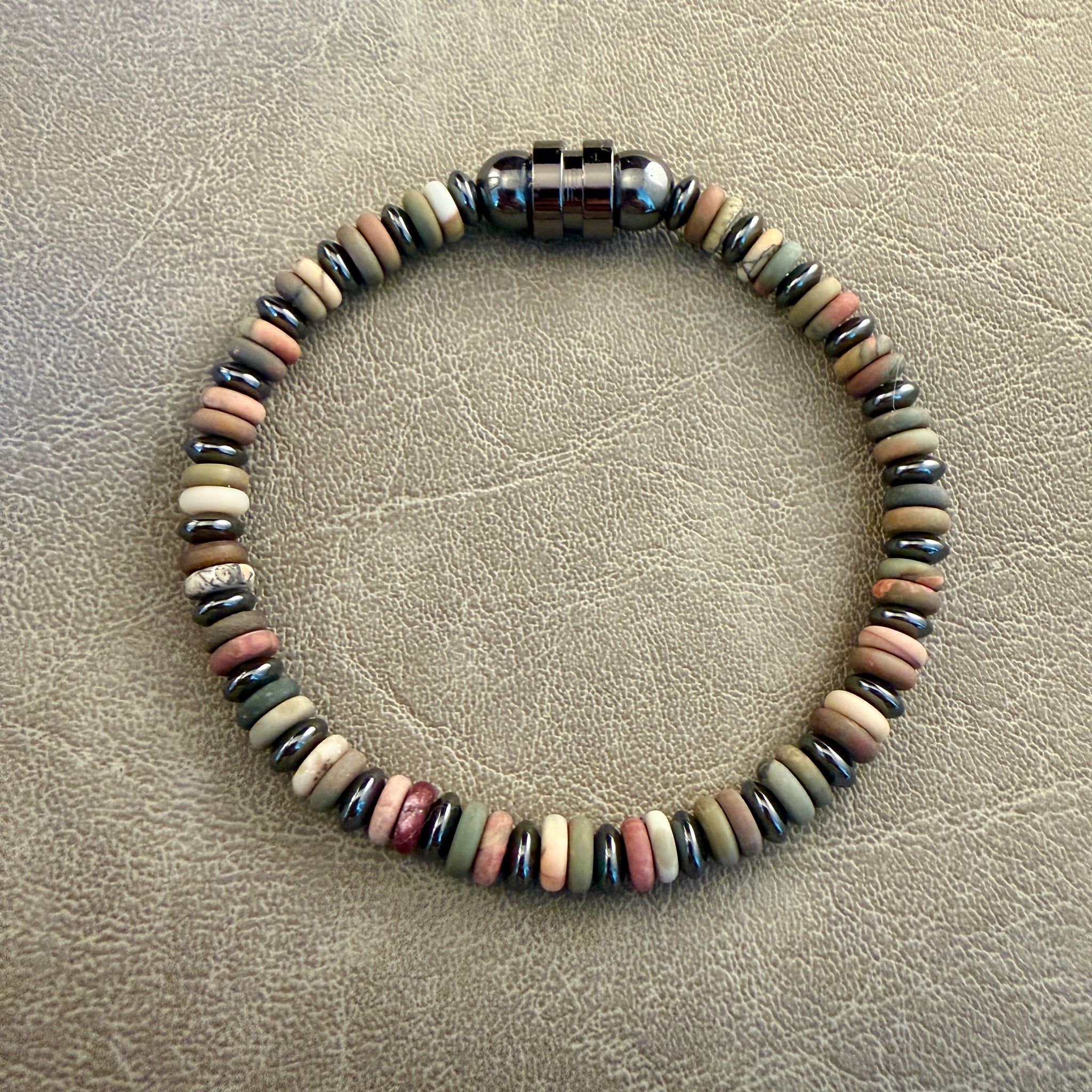 De armband bestaat uit 6 mm kralen van natuursteen met een stainless steel (RVS) sluitkraal. Stainless steel verkleurt niet en gaat lang mee. Zou je de armband in een andere kleurencombinatie willen of wil je een gepersonaliseerde armband naar jouw wensen? Neem dan contact met ons op.
