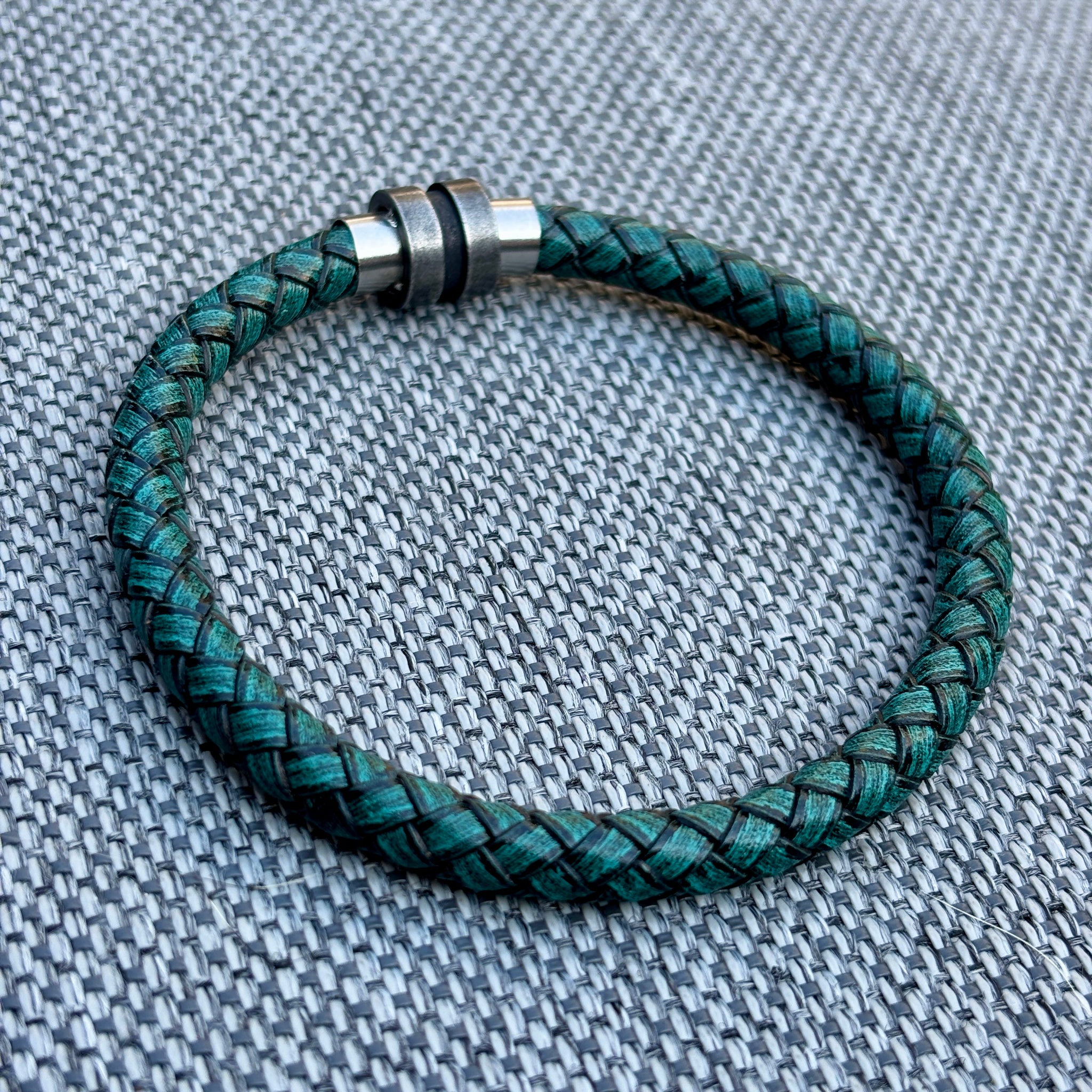 De armband is gemaakt van 6mm groen leer met een stainless steel (RVS) sluiting. Stainless steel verkleurt niet en gaat lang mee. Zou je de armband in een andere kleur willen of wil je een gepersonaliseerde armband naar jouw wensen? Neem dan contact met ons op.