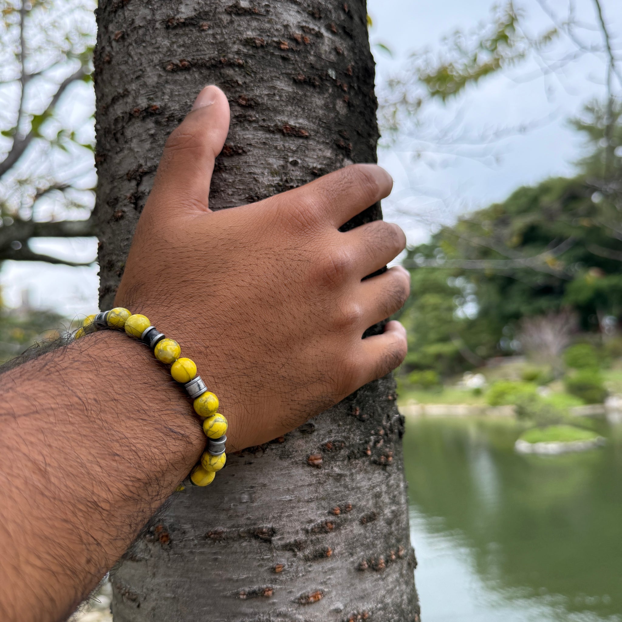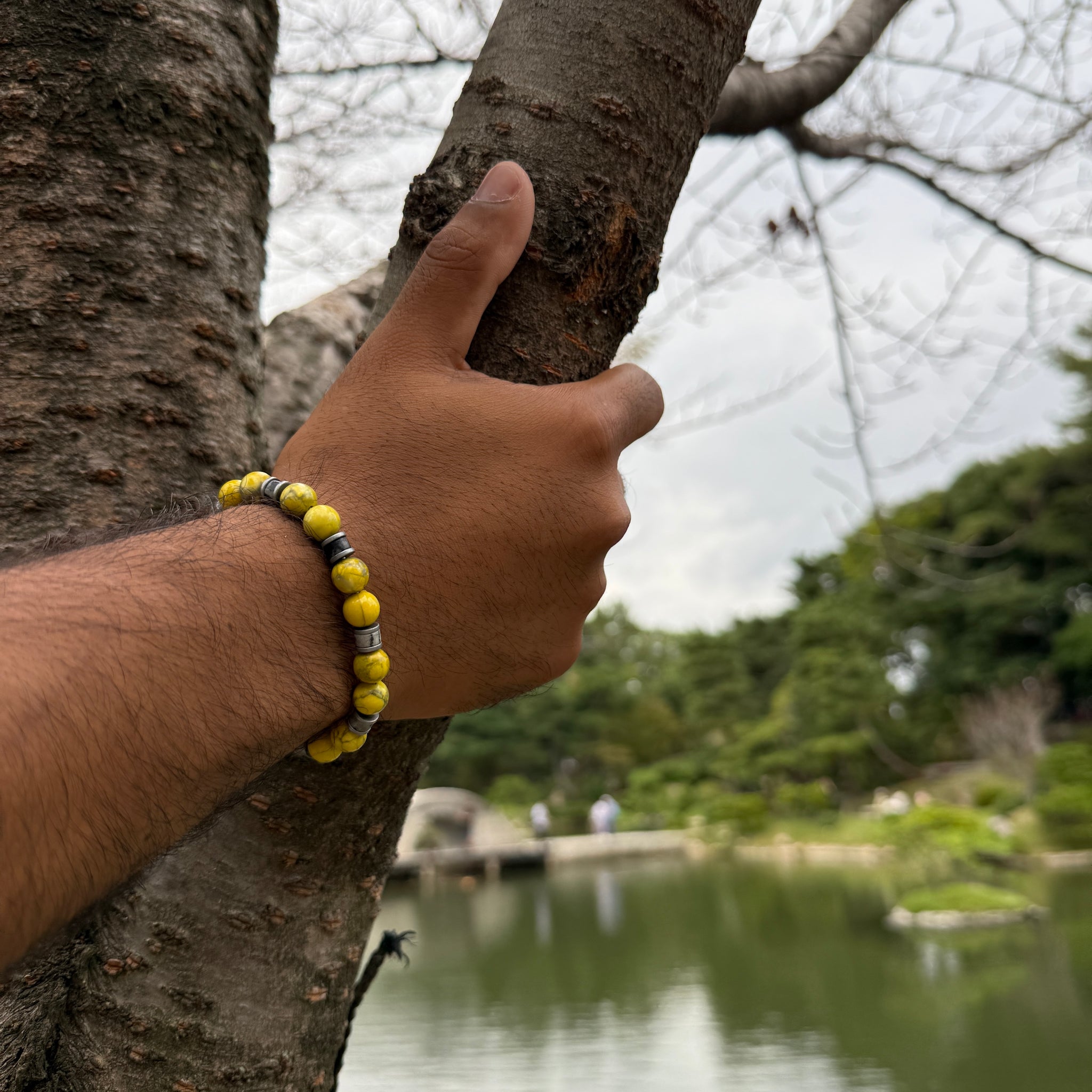 De armband bestaat uit 8 mm kralen van natuursteen met een stainless steel (RVS) sluitkraal. Stainless steel verkleurt niet en gaat lang mee. Zou je de armband in een andere kleurencombinatie willen of wil je een gepersonaliseerde armband naar jouw wensen? Neem dan contact met ons op.
