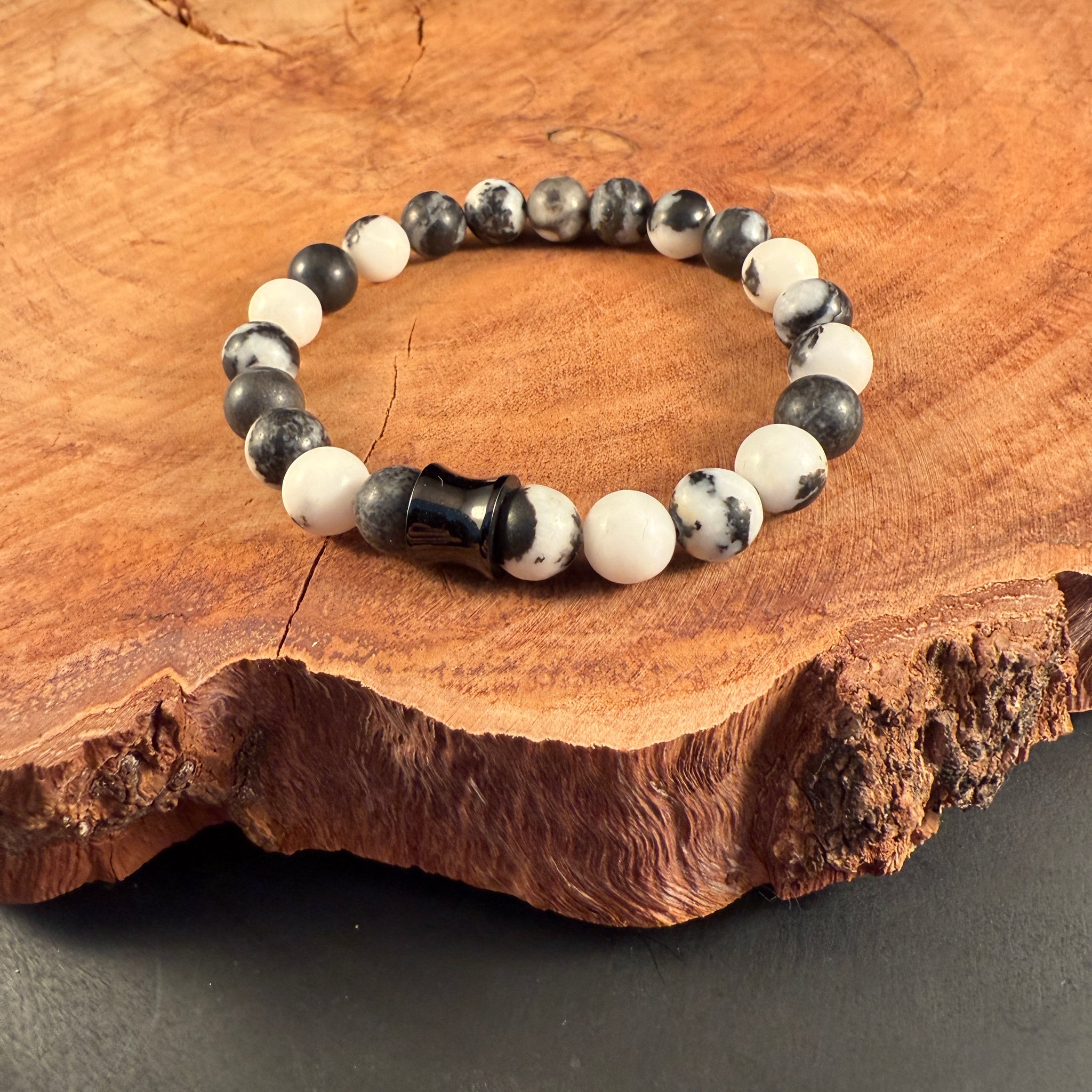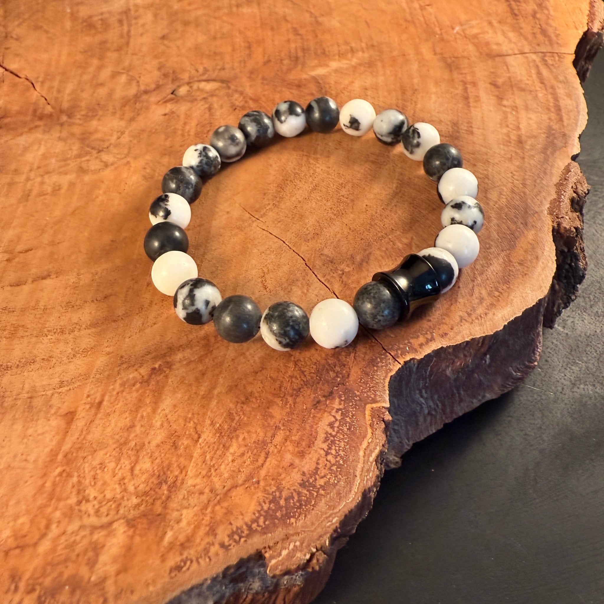 De armband bestaat uit 8 mm kralen van natuursteen met een stainless steel (RVS) sluitkraal. Stainless steel verkleurt niet en gaat lang mee. Zou je de armband in een andere kleurencombinatie willen of wil je een gepersonaliseerde armband naar jouw wensen? Neem dan contact met ons op.